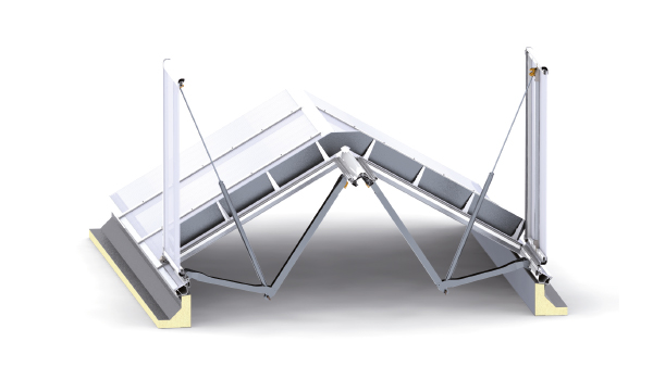 solo aperto, aperto-chiuso, pneumatico, 24V, 230V; testato UNI EN 12101-2, misura e dimensionamento dell'impianto conformemente a DIN 18232-2, LBO e Direttiva relativa agli edifici industriali – per lucernari a cupola, oscuranti, battenti singoli, lucernari continui, strutture per tetti vetrati, scale, evacuazione fumi tromba dell’ascensore e vetrature a parete.